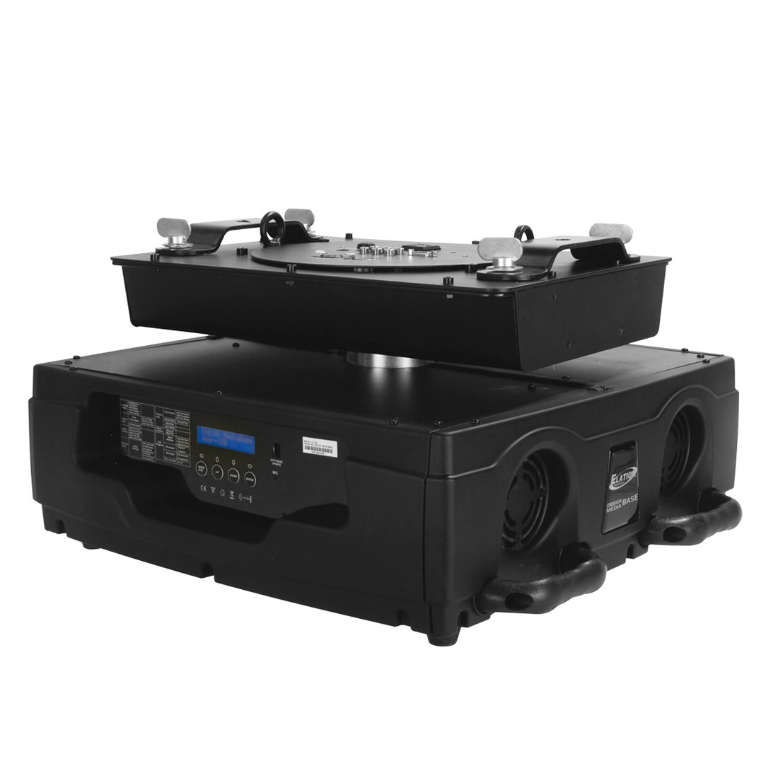 The DMX-controlled “Media Base” has been designed to rotate LCD Screens / Plasmas or Beamers on exhibitions, in thea- tres, clubs or as presenting eyecatcher for commercial pur- poses. Great for retail environments and other applications where advertising needs to be highlighted.
