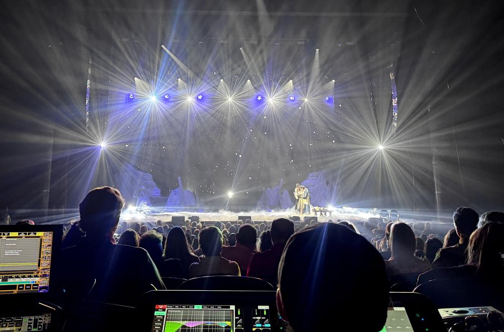 "It's the starry night scene when Jesus is born," Fournier says. "Dot gobos from the PARAGONs cut through the haze, and it feels like you're really inside that moment. Using gobos and the animation wheel while tracking creates these beautiful, evolving shadows and textures as the focus moves around to the different zones. The beam spread across the room, and the clarity of the fixture really carries the emotion and underscores the importance of that moment."