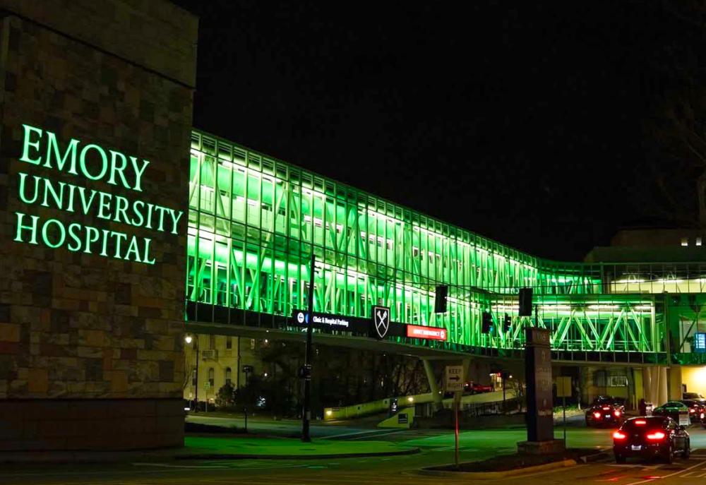 To mark the launch on January 21, Emory Healthcare hospitals, clinics, and regional landmarks glowed in 'innovative green,' a color representing life, healing, renewal, and hope, creating a unified and highly visible presence across the region. The new shade of green is a key element of the refreshed identity.