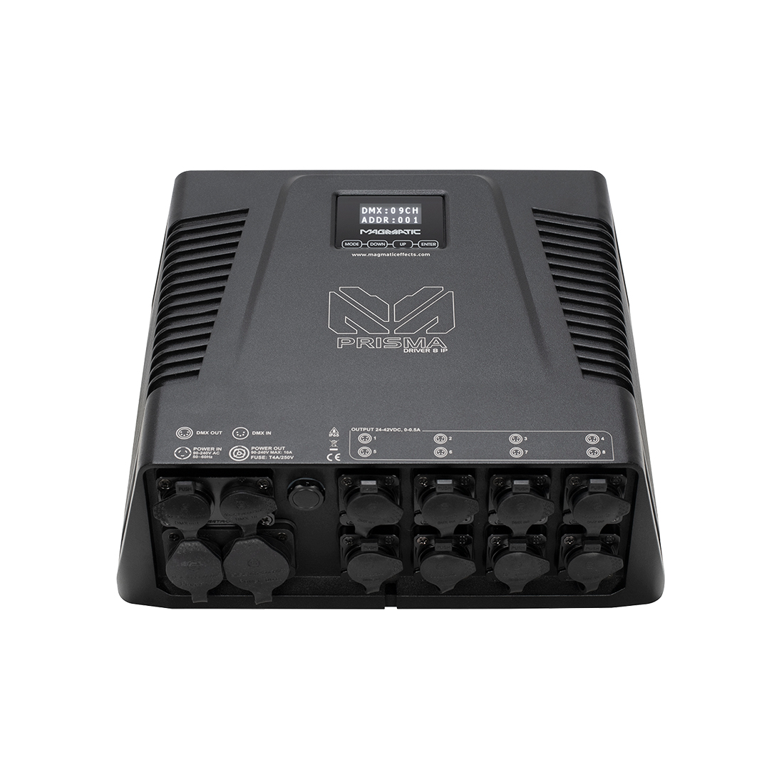 8 x 4pin locking output sockets (8 PRISMA MINI fixtures max)